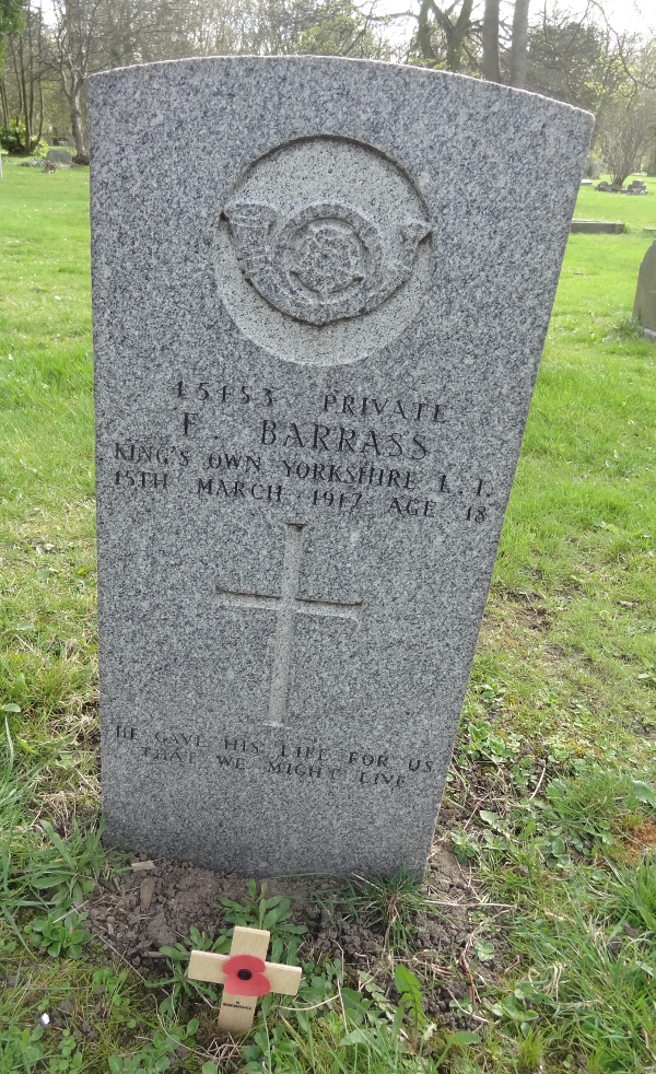 | BARRASS | FRED | F | 18 | 15/03/17 | Private | King's Own Yorkshire Light Infantry | C9215 |