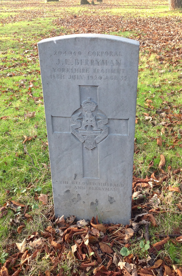 | BERRYMAN | JOHN EDWARD | J E | 35 | 18/07/20 | Corporal | Yorkshire Regiment | C2554 |