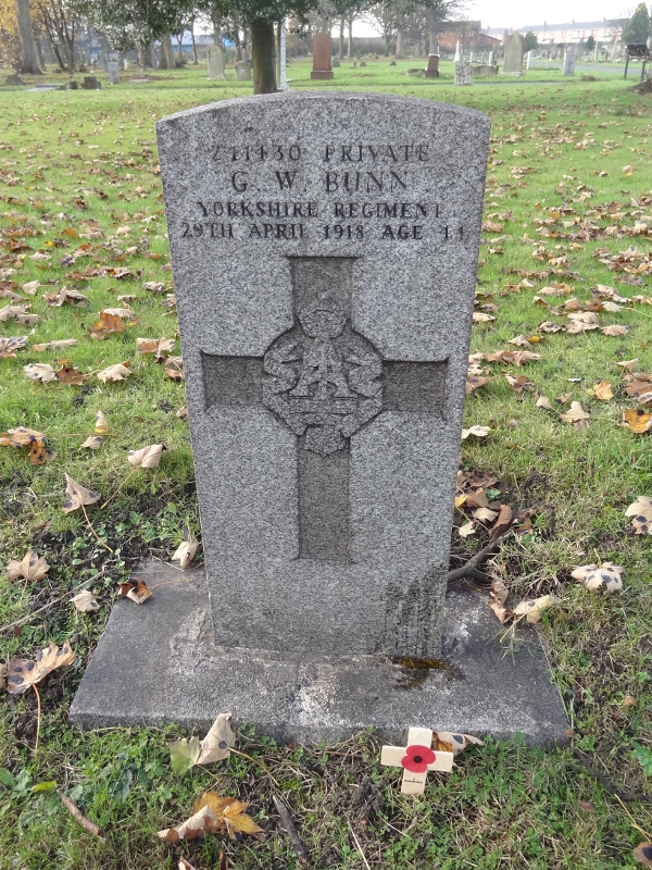 | BUNN | GEORGE WILIAM | G W | 44 | 29/04/18 | Private | Yorkshire Regiment | C8725 |