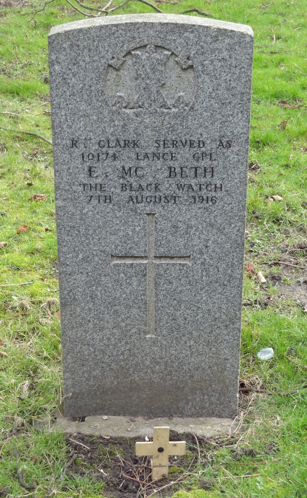 | CLARK (aka McBETH or BETT) | ROBERT | R | 31 | 07/08/16 | Lance Corporal | Black Watch (Royal Highlanders) | X2730 |