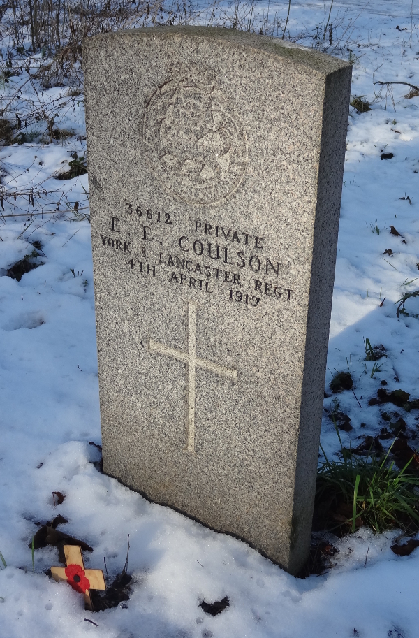 | COULSON | ERNEST | E E | 34 | 04/04/17 | Private | York and Lancaster Regiment | A1334 |