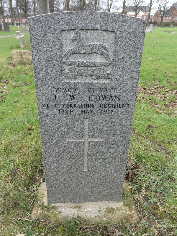| COWAN (aka COWARD) | JOHN | J W | 22 | 13/05/18 | Private | West Yorkshire Regiment (Prince of Wales's Own) | C8949 |