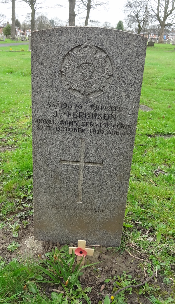 | FERGUSON | JOHN | J | 46 | 27/10/19 | Private | Royal Army Service Corps | D4802 |