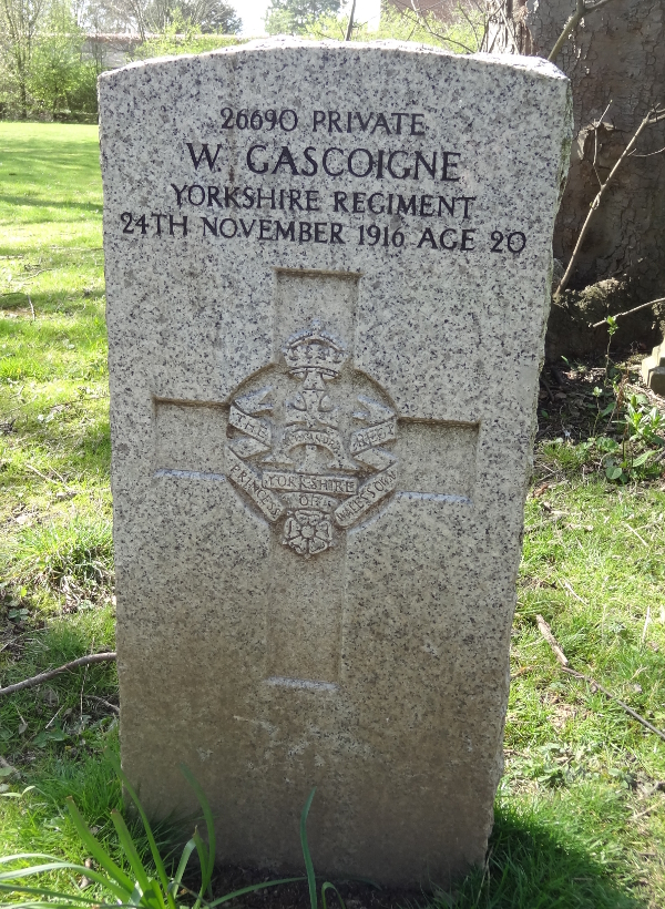 | GASCOIGNE | WILLIAM | W | 20 | 24/11/16 | Private | Yorkshire Regiment | C2097 |