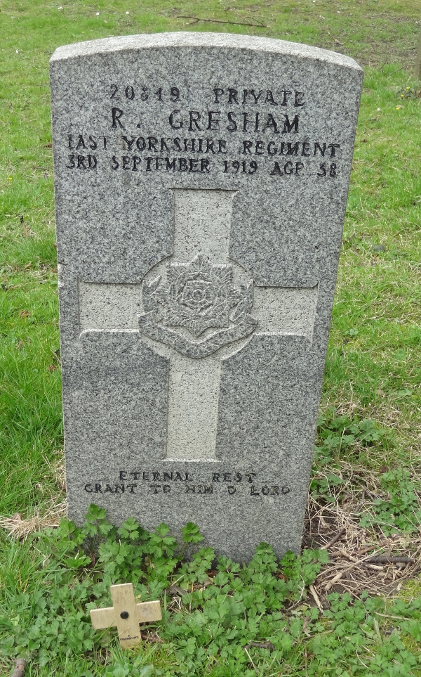 | GRESHAM | ROBERT | R | 38 | 03/09/19 | Private | East Yorkshire Regiment | A5303 |