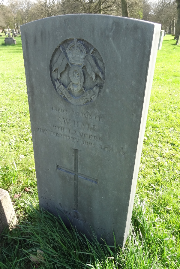 | HALL | THOMAS | T W | 53 | 21/02/21 | Private | 9th (Queen's Royal) Lancers | C8420 |