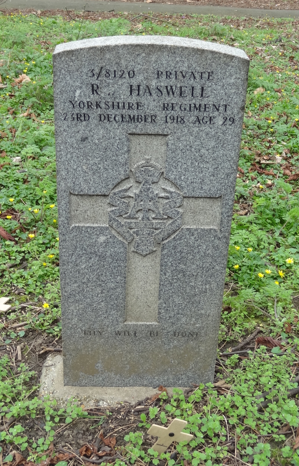 | HASWELL | ROBERT | R | 29 | 23/12/18 | Private | Yorkshire Regiment | A2040 |