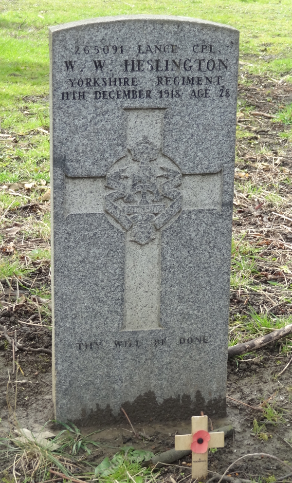 | HESLINGTON | WILLIAM WALKER | W W | 28 | 11/12/18 | Lance Corporal | Yorkshire Regiment | C9317 |