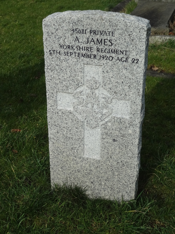 | JAMES | ALBERT | A | 22 | 05/09/20 | Private | Yorkshire Regiment | D3699 |