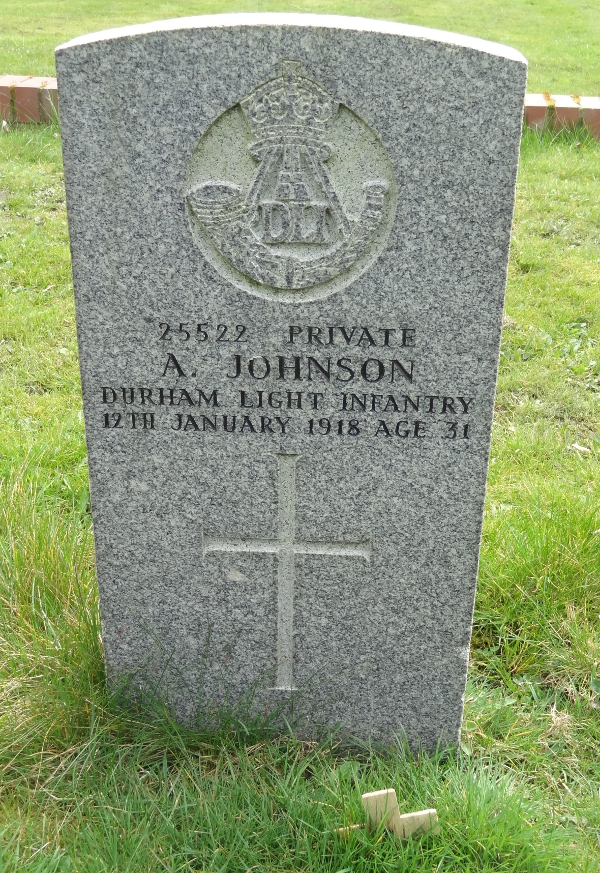 | JOHNSON | ALBERT | A | 31 | 12/01/18 | Private | Durham Light Infantry | D3115 |