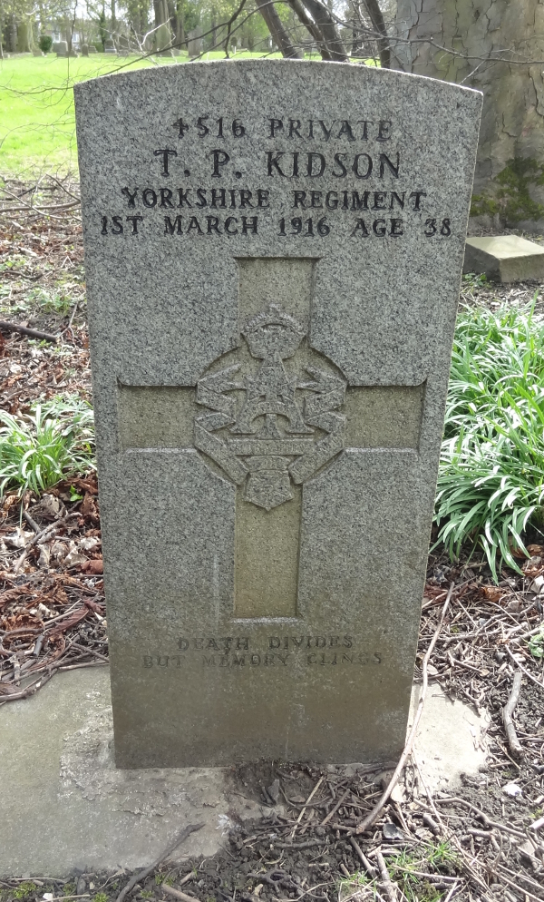 | KIDSON | THOMAS PERCY | T P | 38 | 01/03/16 | Private | Yorkshire Regiment | X2142 |