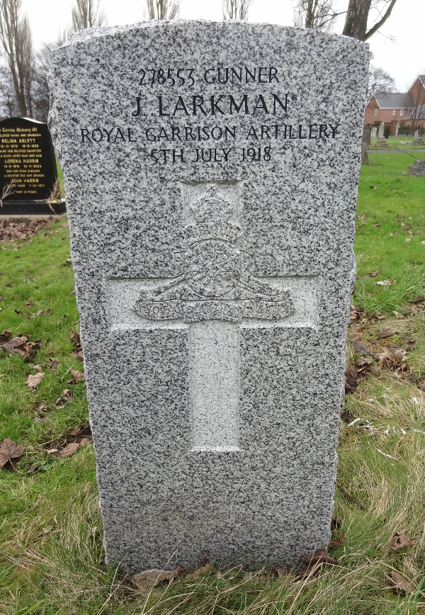 | LARKMAN | JAMES WILLIAM | J | 48 | 05/07/18 | Gunner | Royal Garrison Artillery | C8928 |