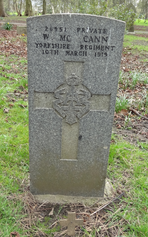 | McCANN (aka JONSTONE) | WILLIAM | W | 22 | 10/03/19 | Private | Yorkshire Regiment | A5193 |