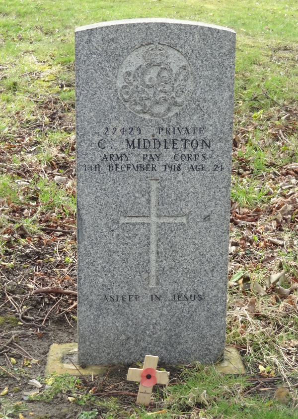 | MIDDLETON | CHARLES | C | 24 | 04/12/18 | Private | Army Pay Corps | C9311 |