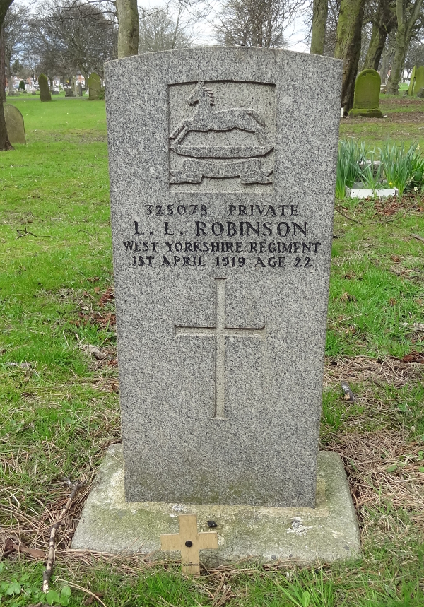 | ROBINSON | LESLIE LOWE | L L | 22 | 01/04/19 | Private | West Yorkshire Regiment (Prince of Wales's Own) | A5229 |