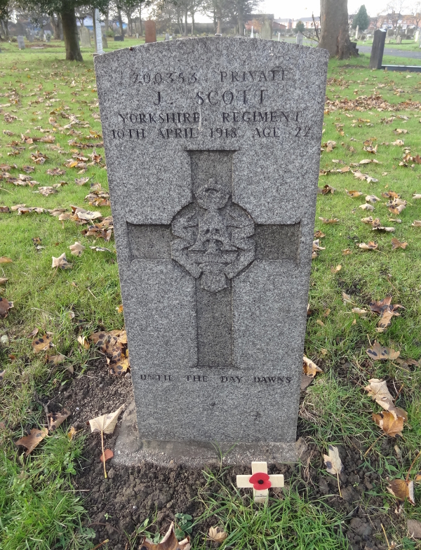 | SCOTT | JOSEPH | J | 22 | 10/04/18 | Private | Yorkshire Regiment | C8723 |