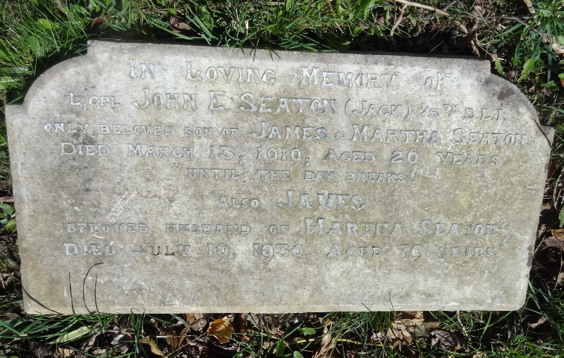 | SEATON | JOHN ERNEST | J E | 25 | 13/03/19 | Lance Corporal | Durham Light Infantry | C9395 |