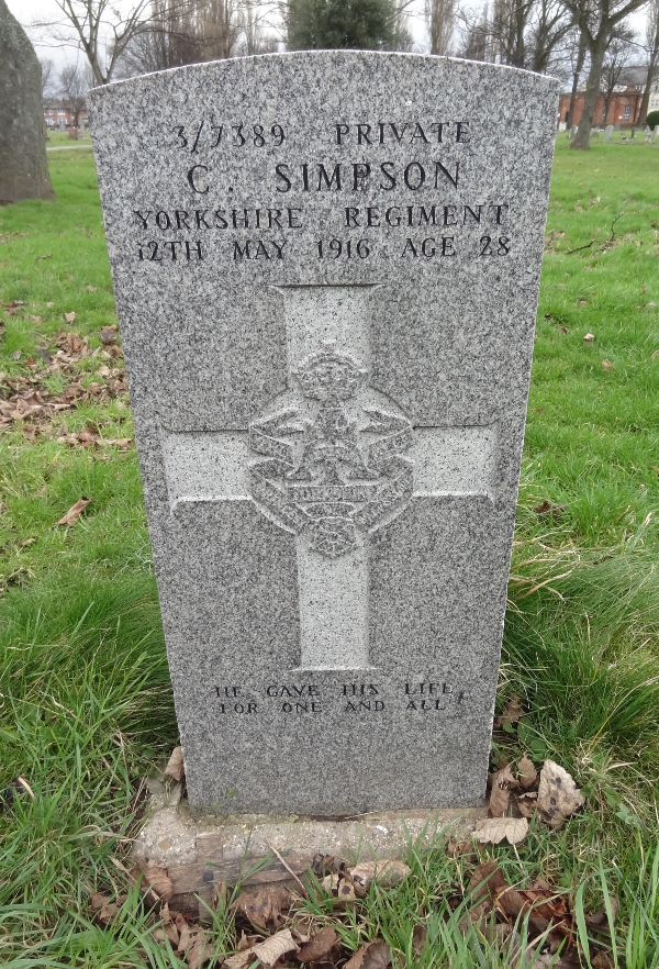 | SIMPSON | CHARLES | C | 28 | 12/05/16 | Private | Yorkshire Regiment | D3797 |