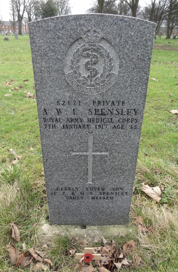| SPENSLEY | ALGER WILLIAM LING | A W L | 33 | 07/01/17 | Private | Royal Army Medical Corps | C8158 |