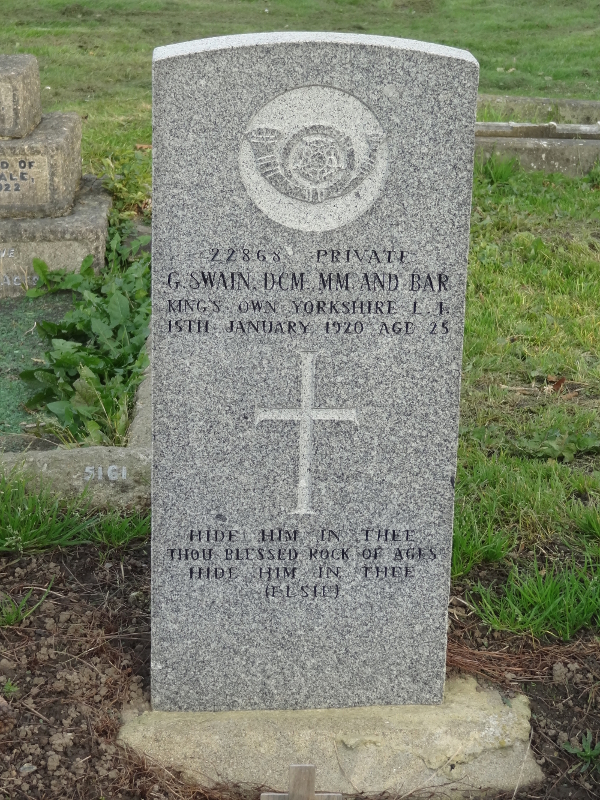 | SWAIN | GEORGE EUGENE GORDON | G E G | 25 | 15/01/20 | Private | King's Own Yorkshire Light Infantry | D5074 |