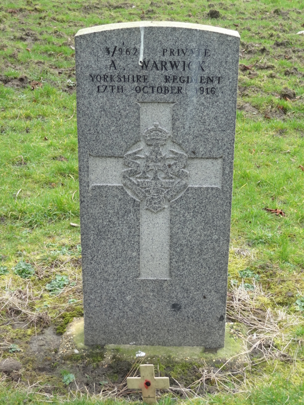 | WARWICK | ARTHUR | A | 39 | 17/10/16 | Private | Yorkshire Regiment | C2682 |