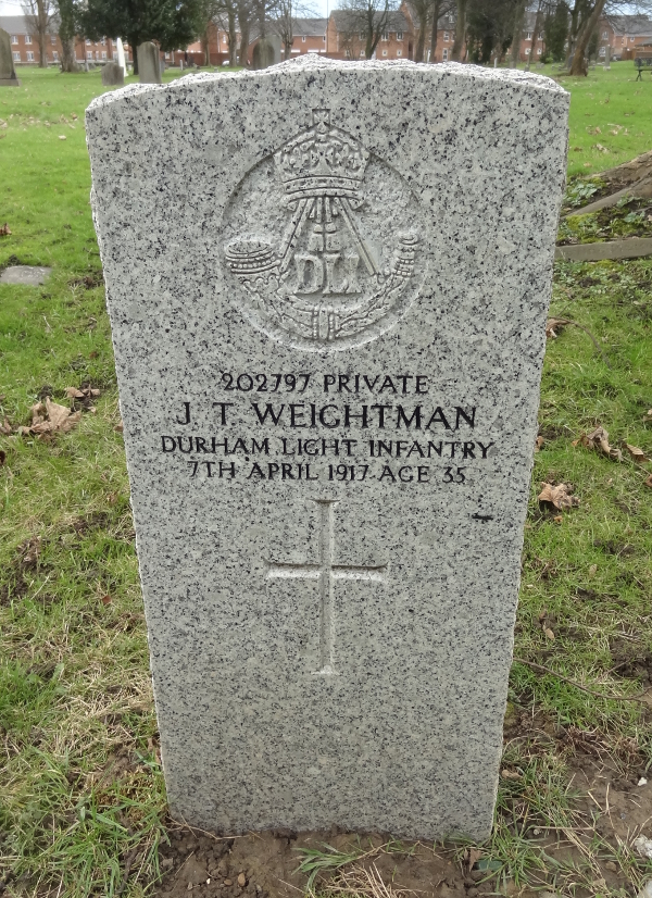 | WEIGHTMAN | JOHN THOMAS | J T | 35 | 07/04/17 | Private | Durham Light Infantry | C8402 |