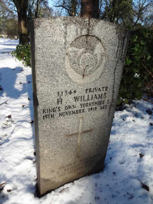 | WILLIAMS | HENRY | H | 31 | 15/11/18 | Private | King's Own Yorkshire Light Infantry | C1058 |